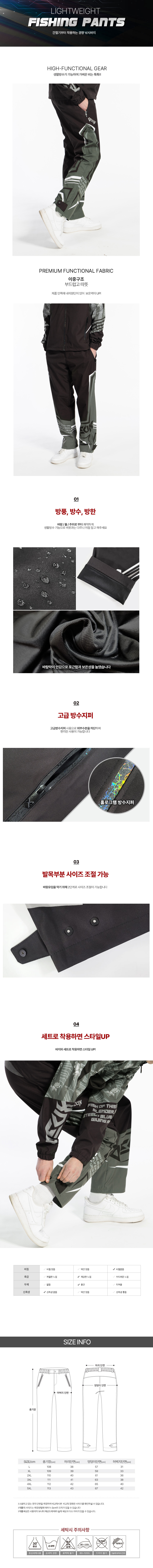 > 경량낚시바지ㅣ생활방수 방풍 웜라이트하의 PCS-001